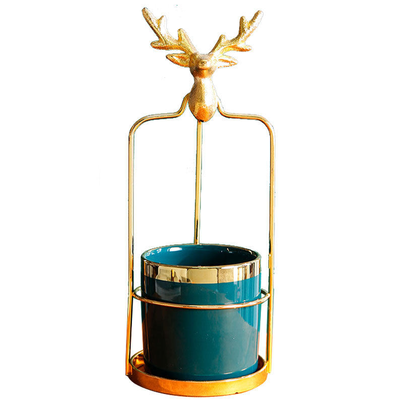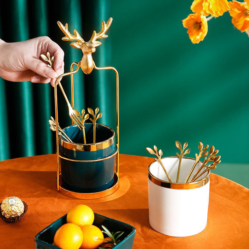 Nordic metal elk-shaped handle ceramic fruit fork and spoon placing jar home hotel dessert cake fork jar