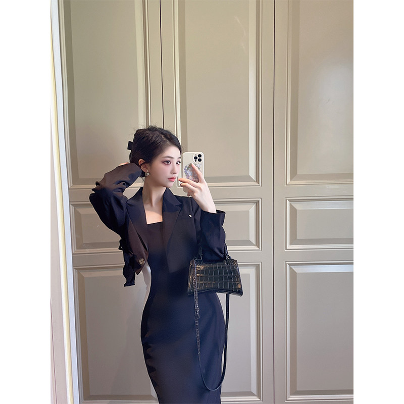Office suits 2022 spring and autumn new ladies net red fried street salt sweet small suit two-piece dress