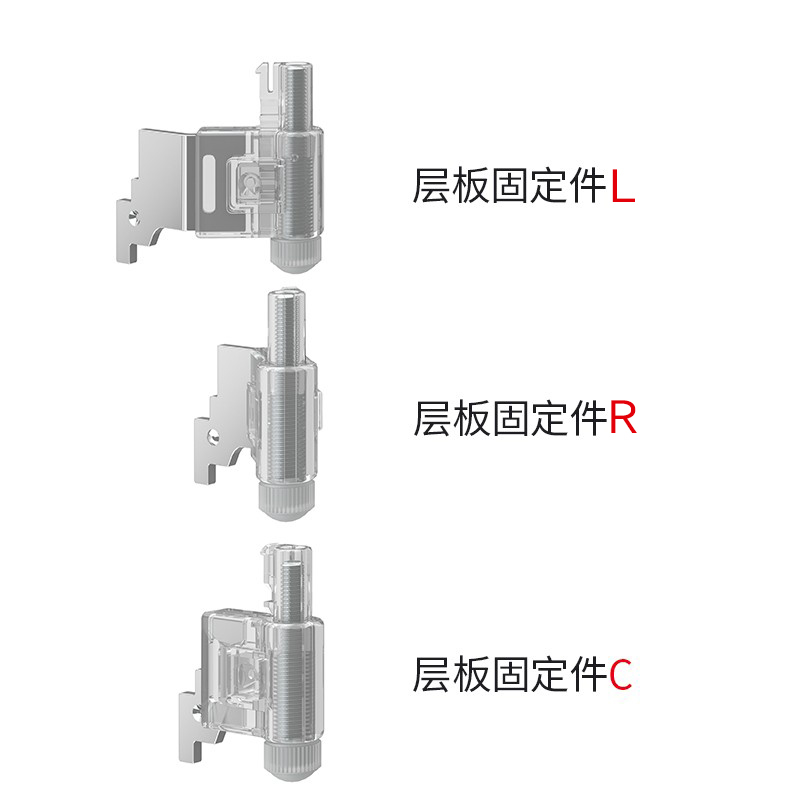 Laminate fixing piece L Shelf fixing piece R Shelf fixing piece C Reinforcement tube chrome-plated 598 Reinforcement tube black 598 Reinforcement tube drawing 598 Reinforcement tube white 598 Reinforcement tube
