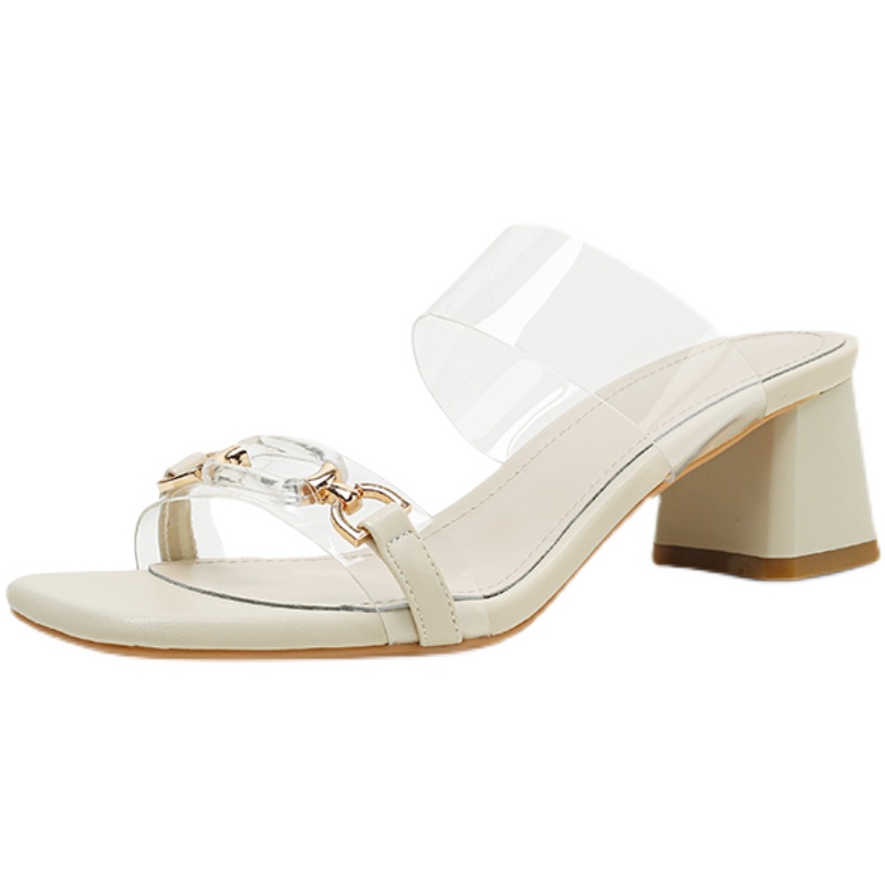 Go out slippers Women summer wear fashion coarse heeled crystal heeled sandals non-slip high-heeled leather word cool slippers