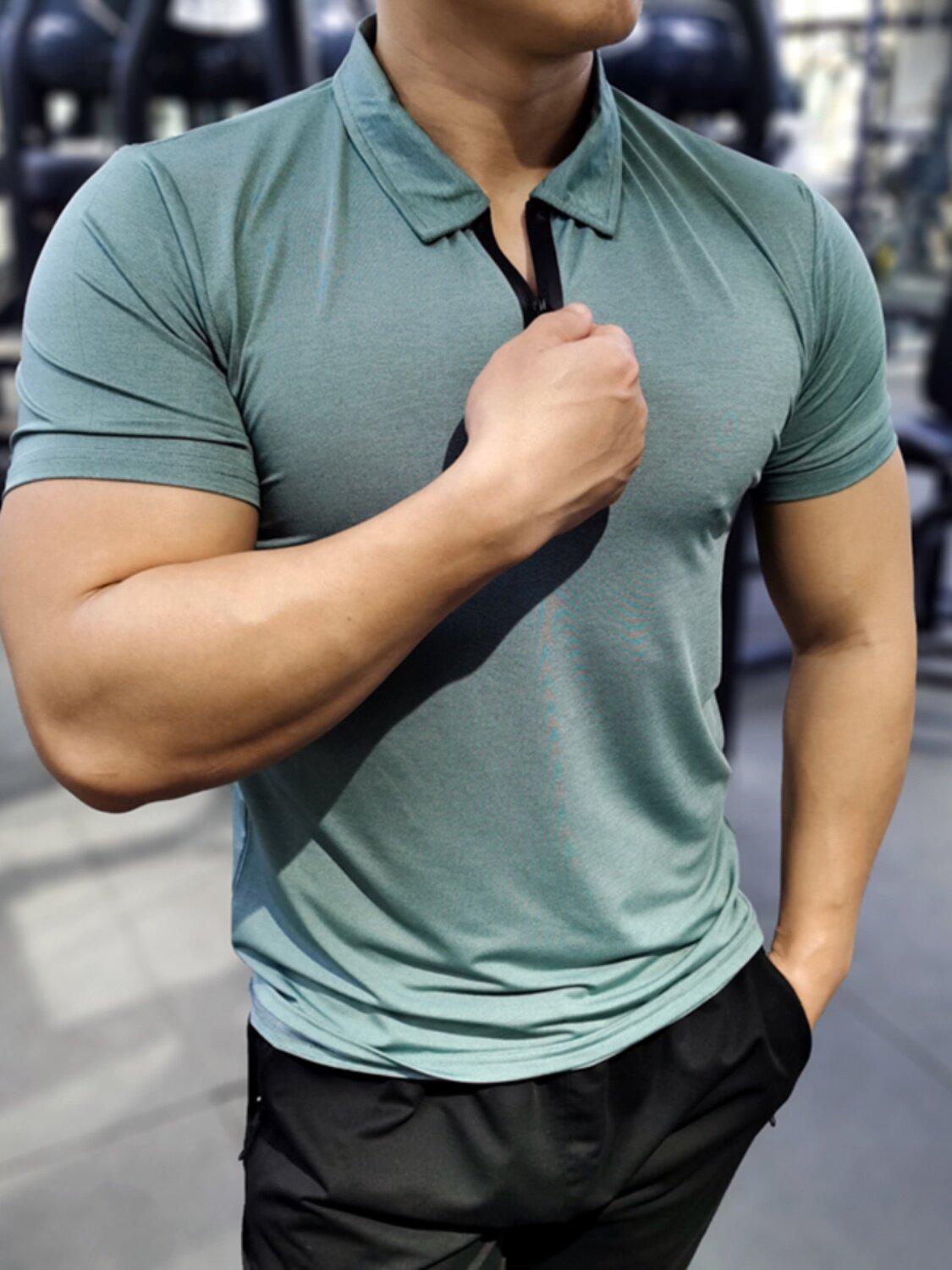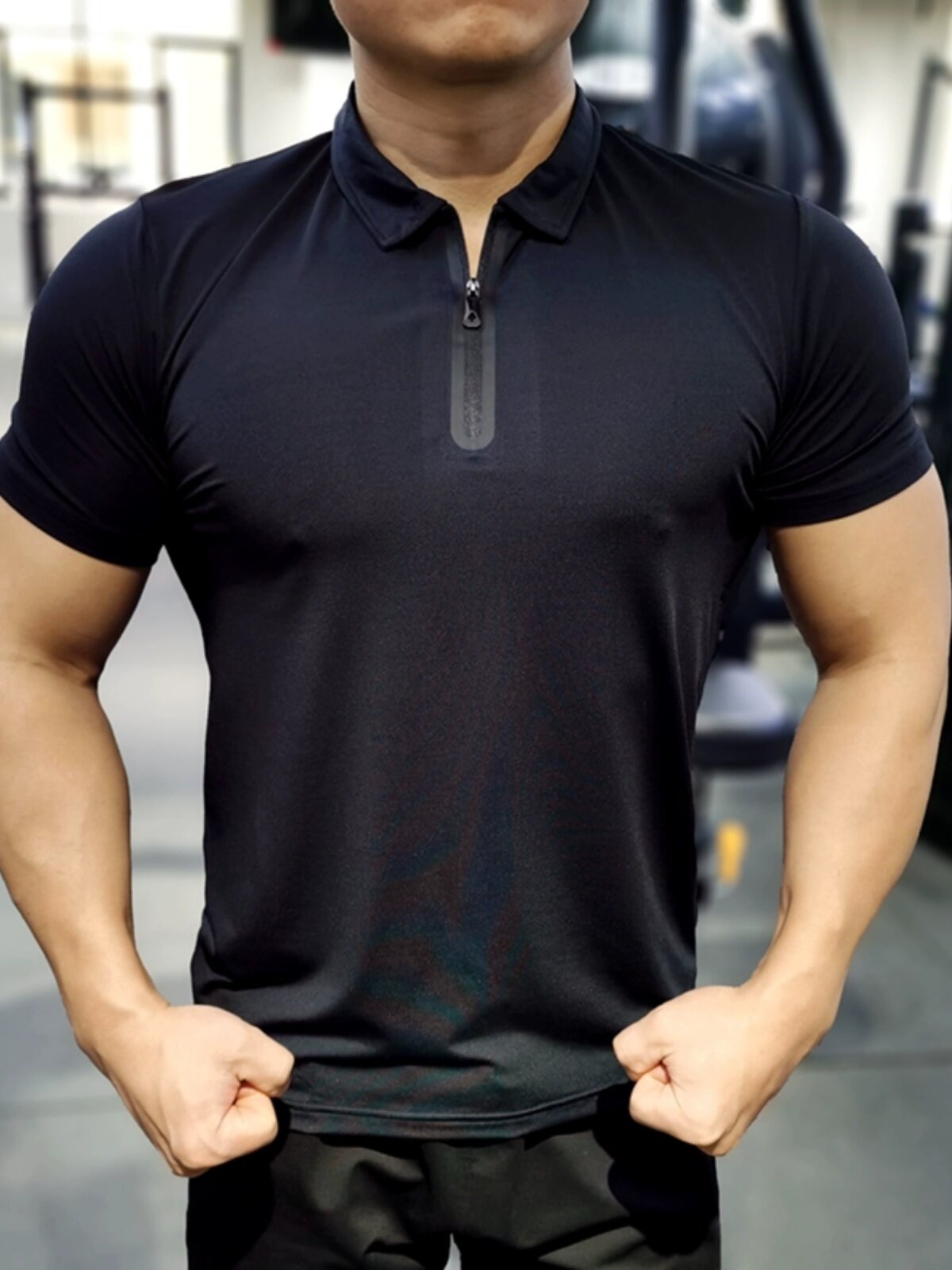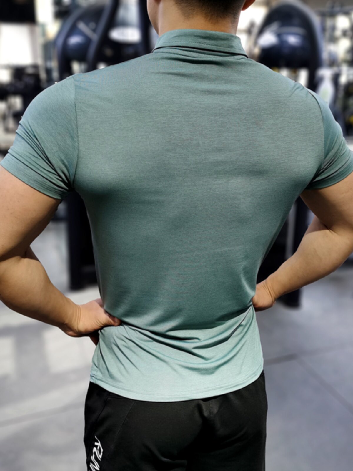 Sports lapel short-sleeved T-shirt men's summer quick-drying breathable elastic running casual simple loose fitness POLO shirt