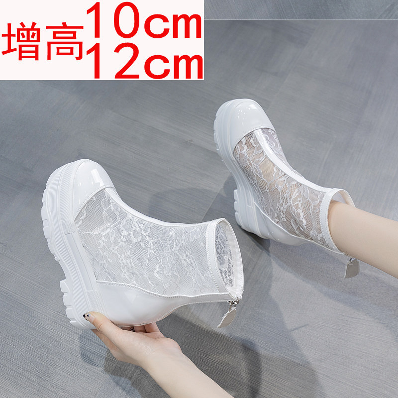 Martin Boots Woman Summer Thin Inside Heightening Women's Boots Mesh Yarn Thick Bottom Pine Pastry 10 cm Ultra High Heel 12 Cm Cool Boots