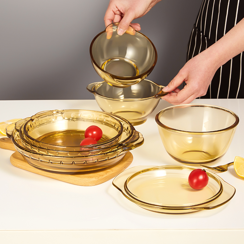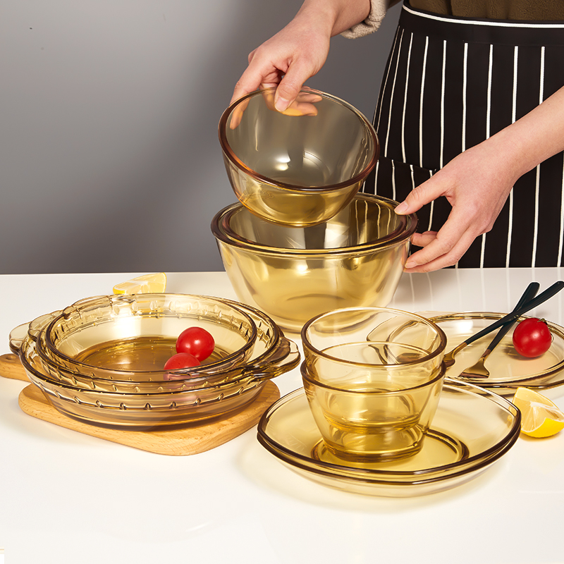 Glass Cutlery Sets Transparent Dish Suit Home High Temperature Resistant Soup Bowls Plate Saucepan Bowl Salad Bowl 16 pieces
