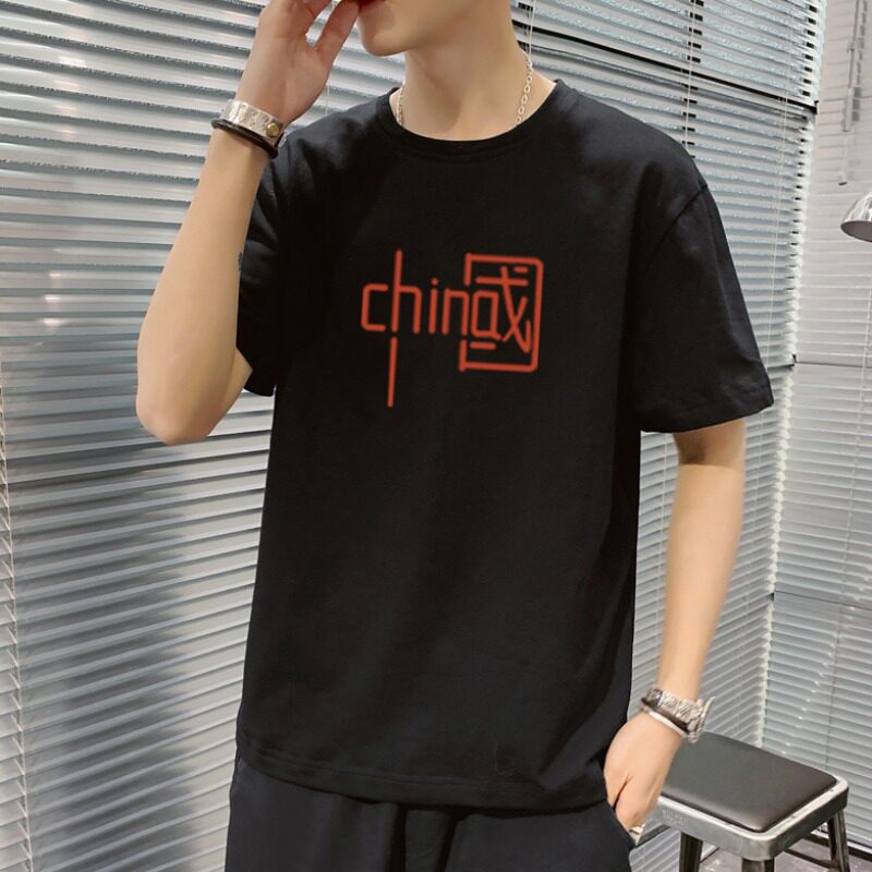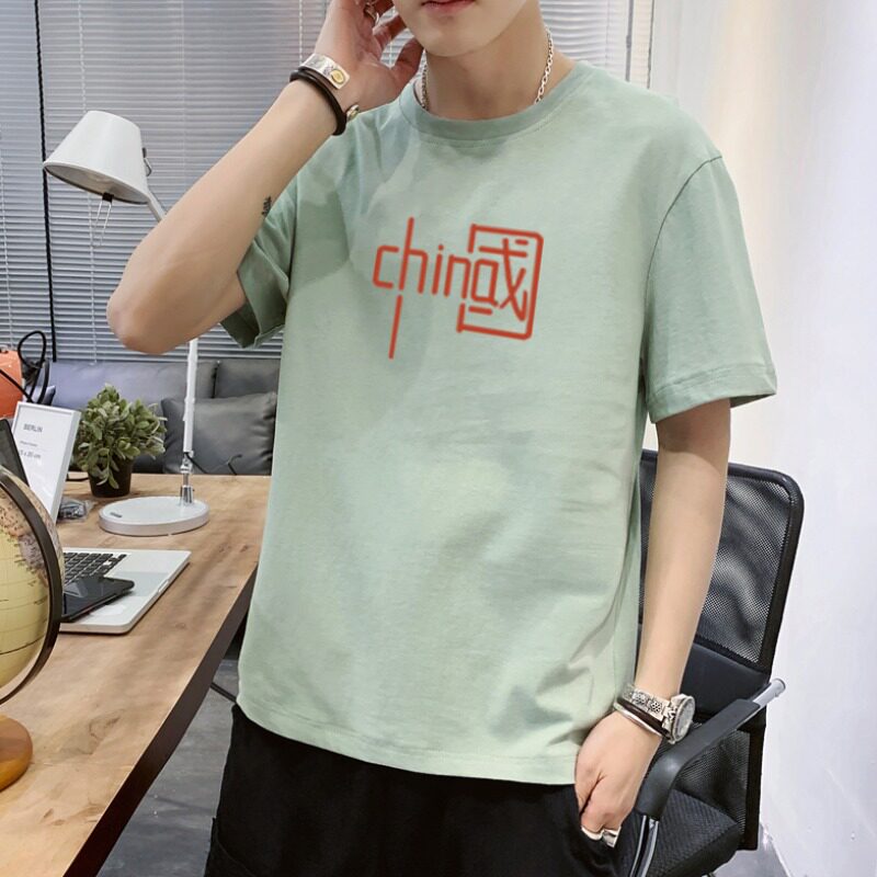 Bin Stone One Tree Pure Cotton Short Sleeve T-shirt Male Summer 2022 New 100 Hitch Round Collar Loose Casual Blouses