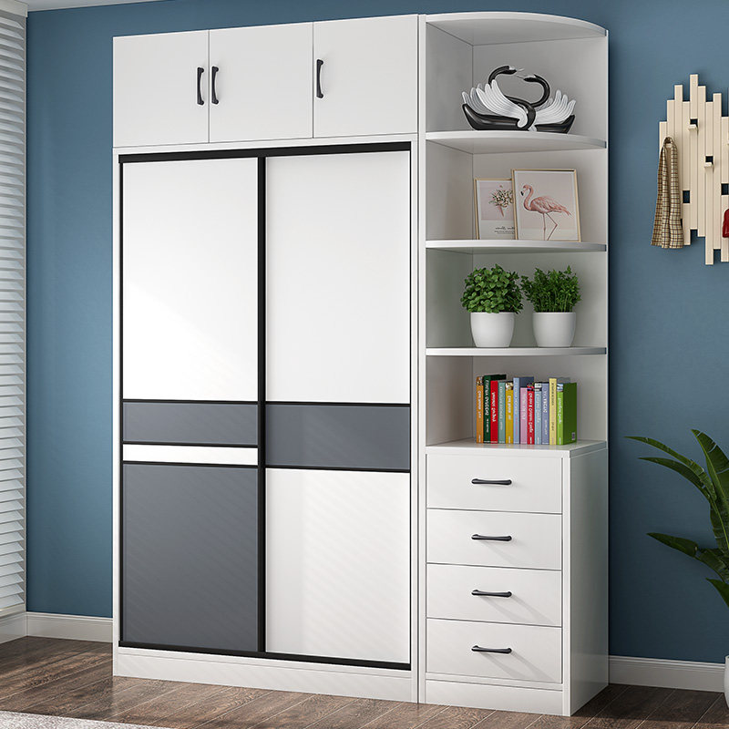 Wardrobe Home bedroom sliding door modern simple integral solid wood cabinet economy bag installation combination large wardrobe