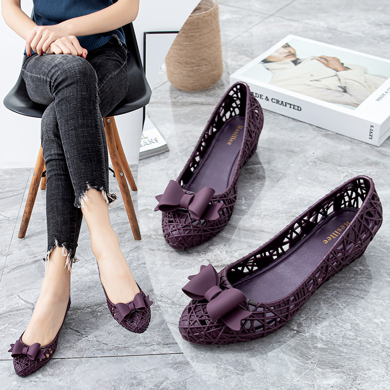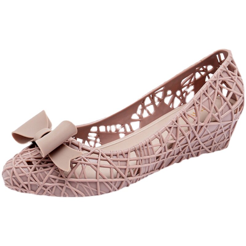 Summer pointed hollow slope and shoes lady breathable waterproof and anti-slip heel jelly shoes beach plastic sandals