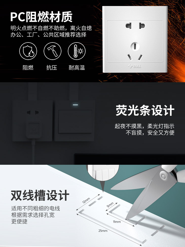 Bull clear-mounted switch socket with switch double-cut clear line one open 5 five-hole clear box 16a special panel for air conditioning