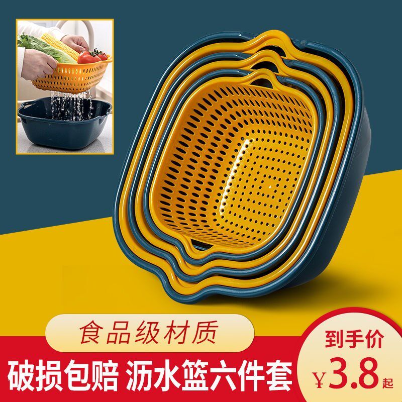 Double-layer kitchen washing basin draining basket hot pot platter washing vegetable basket household living room plastic fruit basin washing fruit plate