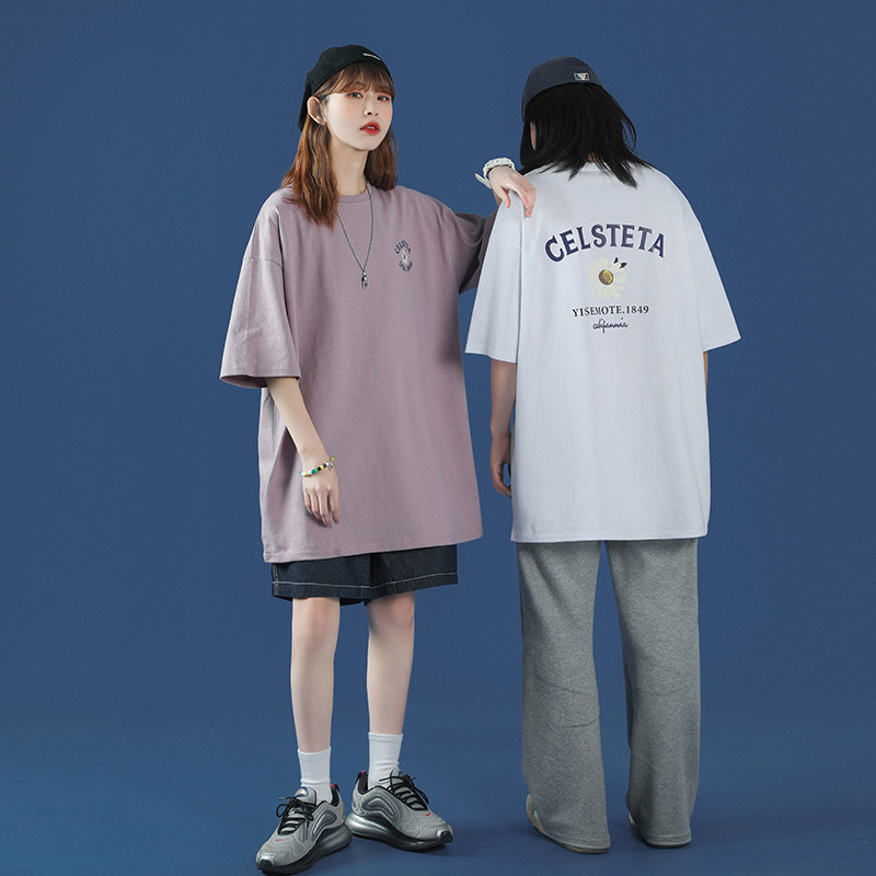 Original Juku Short Sleeve T-Shirt Woman Oversize Design Sensation Small Crowd Fat Mm Large Size Couple Purple Middle Sleeve Blouse Summer