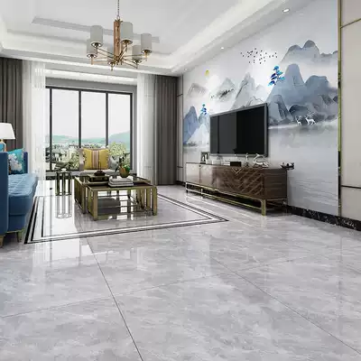 Gray whole body marble tile 800x800 living room floor tile background wall tile Foshan modern glaze floor tile
