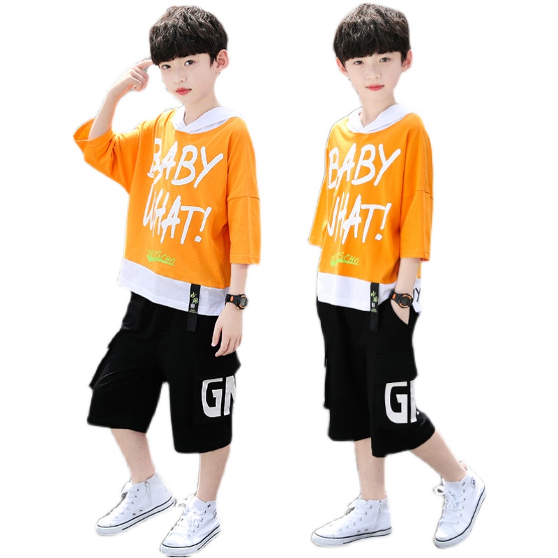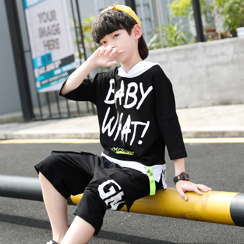 Next Inss Boys Suit 2022 Summer New Korean version of the foreign pie Short sleeves Letter loose clothing Two sets