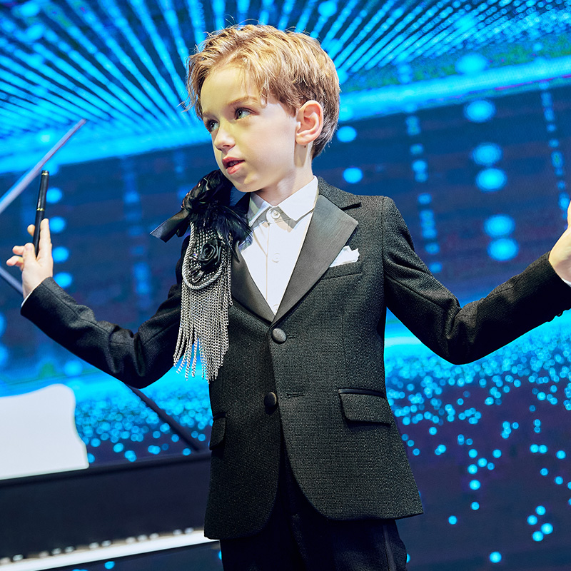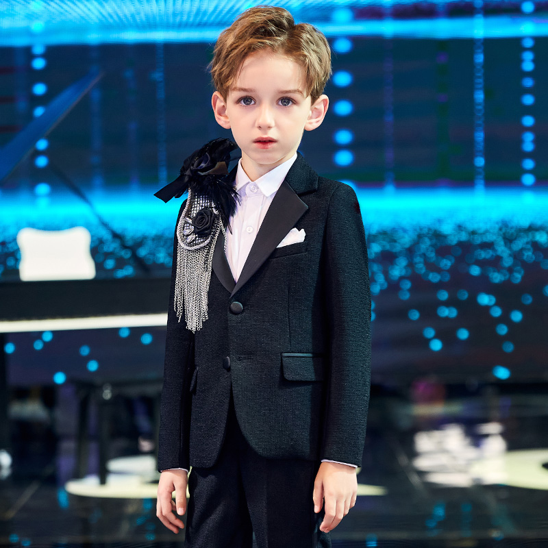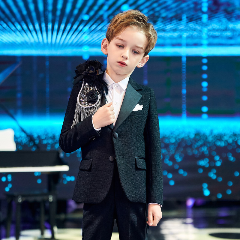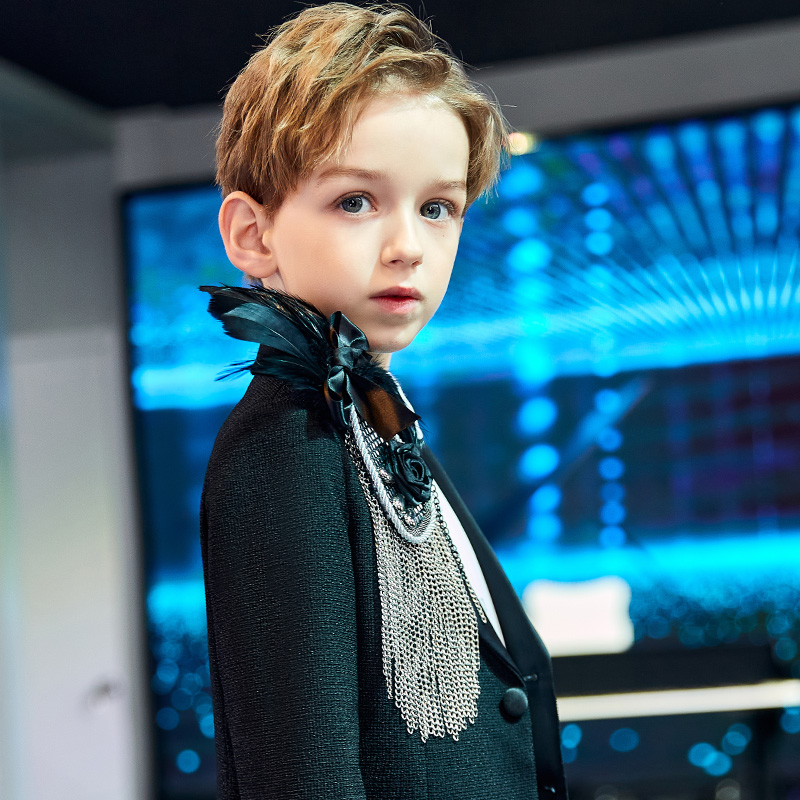 Boys suit epaulets children's dress model catwalk feather tassel big brooch accessories boy piano costume