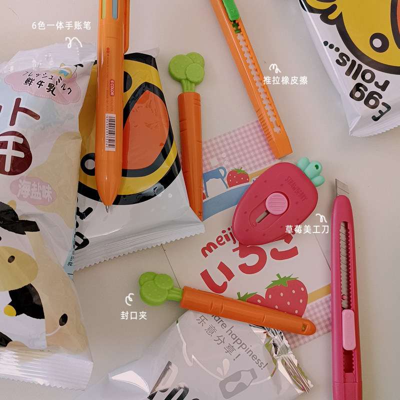 Carrapper closure clip 1 set of small roperin telescopic merrite knife 1 roperin closure clip 1 set of magician stickers 1 sheet of carpenter closure clip 1 set of love learning stickers 1 sheet carrapper push-pull pencil eraser 1