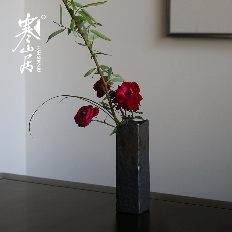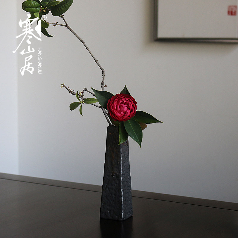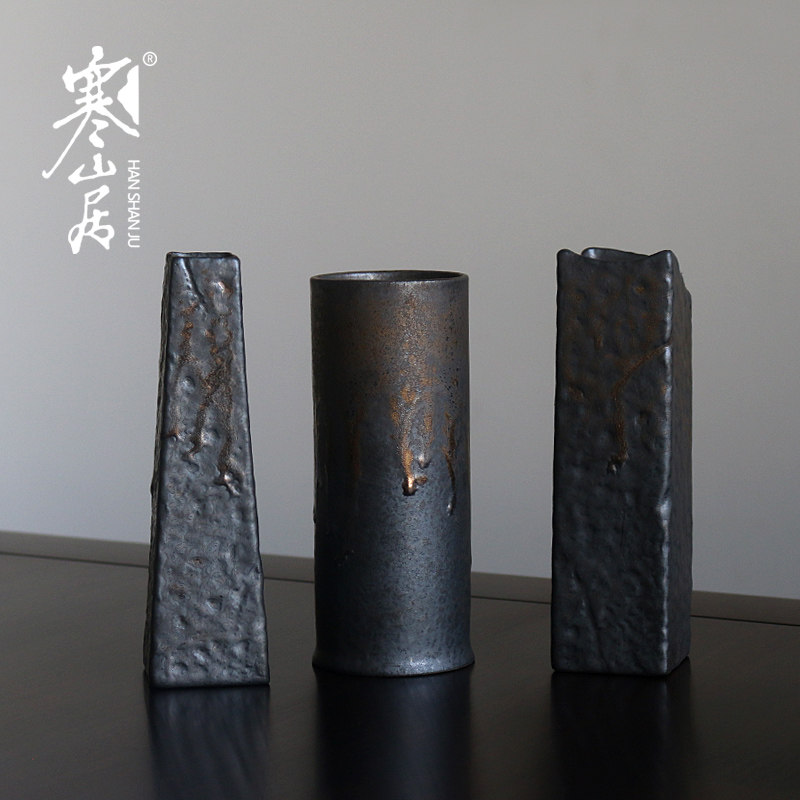 Cold Mountain Black Potter Vase Iron-glazed Vase Gin Ceramic Flower Plurge Japanese Little Flower into Tea Room Flower