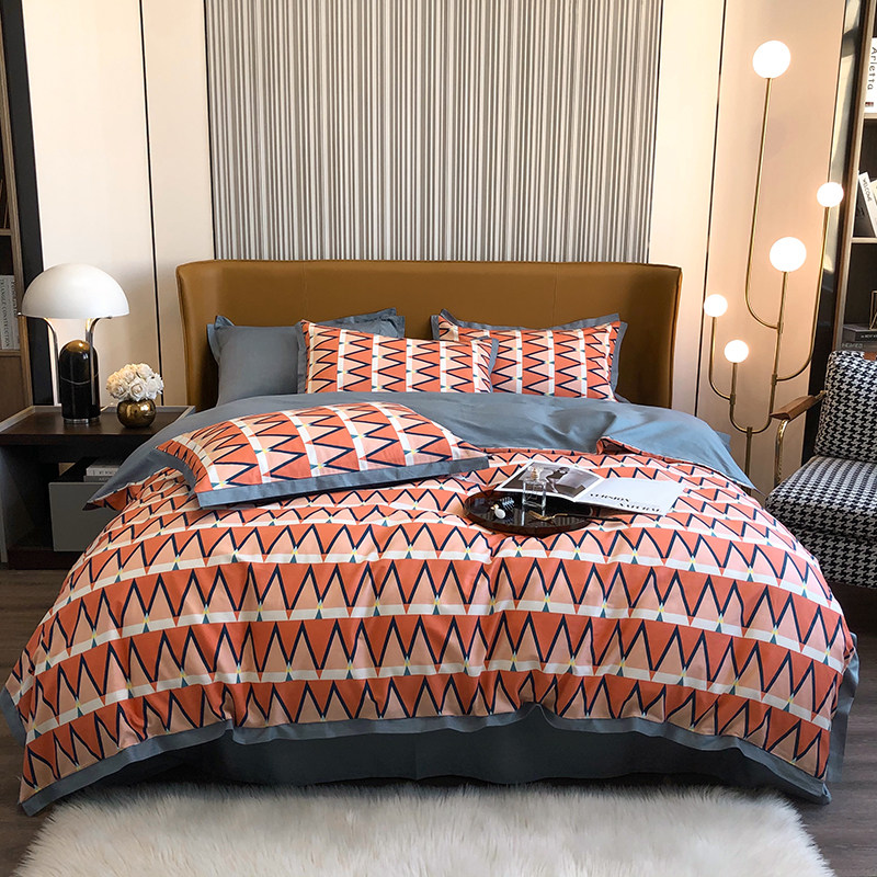 Nordic Wind Star Hotel Retro Light Lavish Printed Craft With Ivory Pie Full Cotton Printed Four Sets Bedding