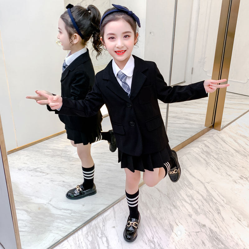 Net Color Suit Jacket Embroidered Suit Jacket Net Color Suit Jacket Skirt Net Color Suit Jacket Skirt Shirt Bluish Tie Net Color Suit Jacket Skirt Blouse Red