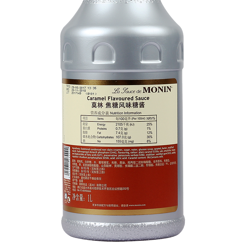 MONIN Moline Caramel Flavored Sugar Sauce 1000ml Caramel Sauce Milk Tea Coffee Cocktail Fruit Tea Special
