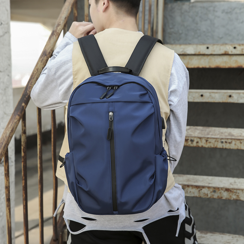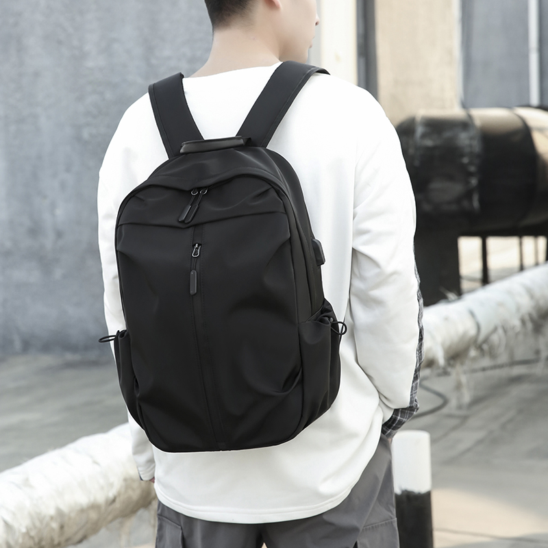 Business computer large-capacity fashion Japanese and Korean men's casual solid color simple backpack youth schoolbag charging pile bag