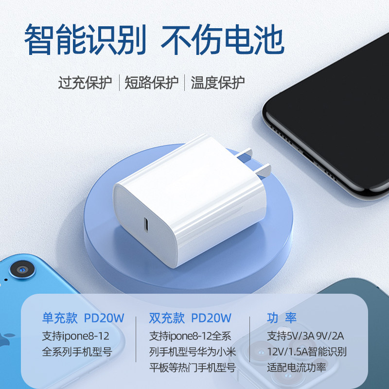 (Apple 8-12 series) PD20W single-charge fast charging head (certified) (Apple 8-12 series) PD20W fast charging head 1 meter PD fast charging cable (certified) (Apple