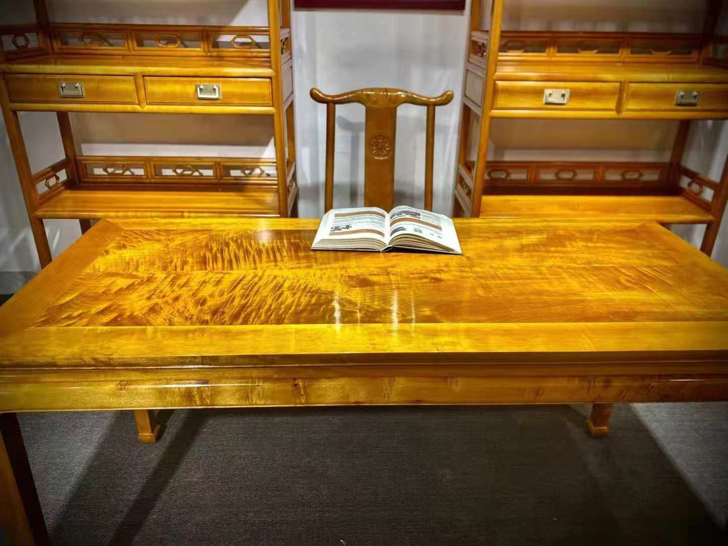 Gold Silk Nanwood Desk Bookcase Combination Suit Small Leaf Zhen Nan Chinese solid wood minimalist computer desk Calligraphy And Painting Desk