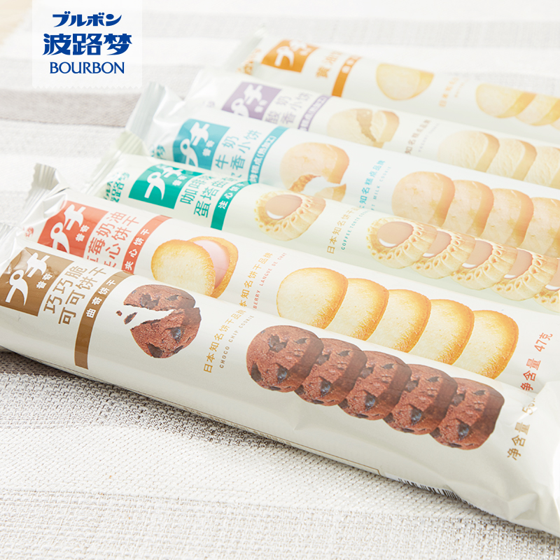 Strawberry Cream 47g*1 Coffee Flavored Egg Tart 56g*1 Milk Soft Fragrance 57g*1 Butter Cookie 56g*1 Qiaoqiao Crispy Cocoa 56g*1 Cheese Flavor 47g*1
