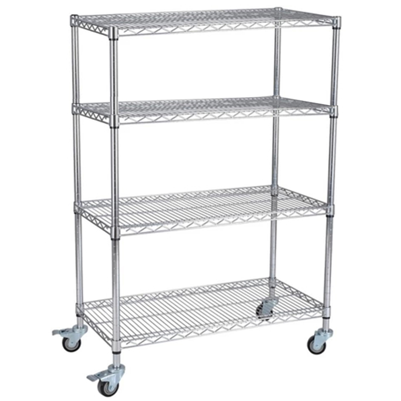 Thickened household shelf chrome-plated rack multi-layer warehouse stainless steel wire mesh shelf movable turnover shelf