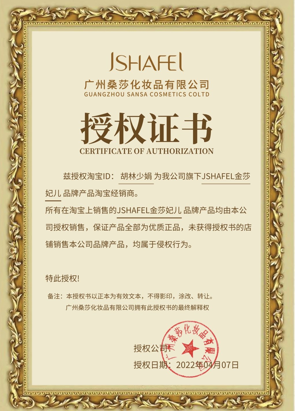 The registration certificate number of the cosmetic filing number: