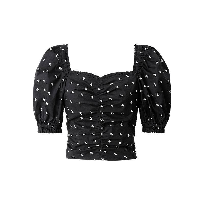 Relish trendy reduction of salt can be salt-sweetened printed V collar foam sleeve t shirt short blouses female summer L