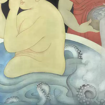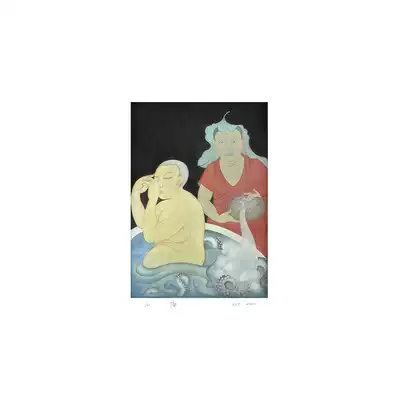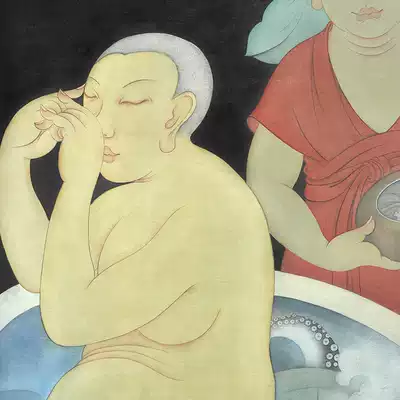 Mounted] Shao Ye "Bath" limited edition painting Silk book heavy color living room study bedroom hanging painting decoration painting