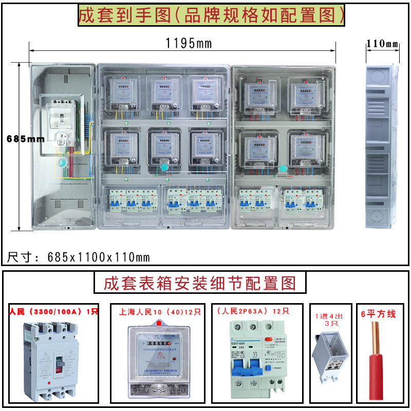 Single-phase 10 meter box home electric box Minning electric meter box complete transparent outdoor waterproof PC plastic distribution box