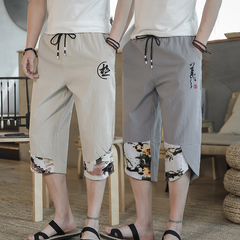 Seven - pants summer thin shorts men 2022 new casual pants five - pants loose Chinese wind pants tide