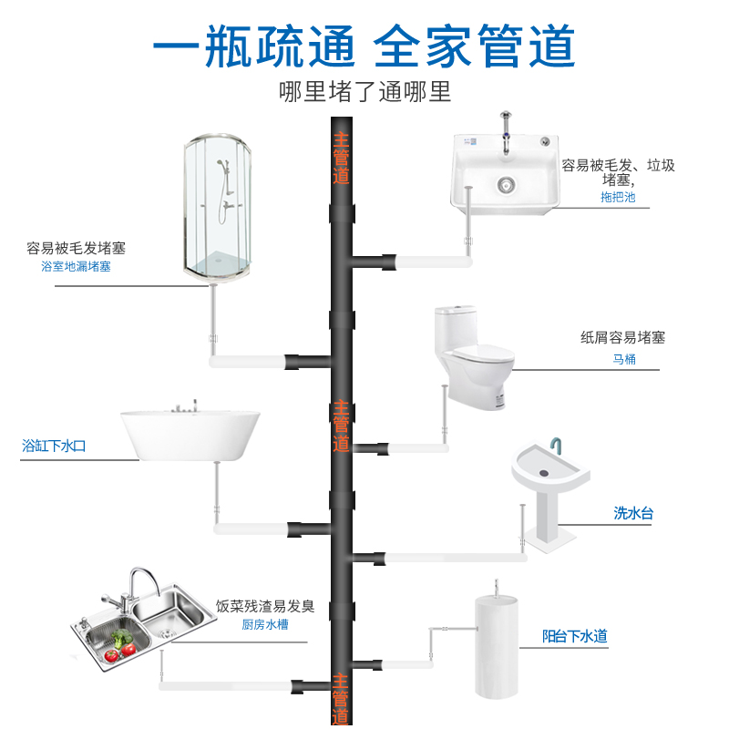 Pipe tube tube tracking agent powerful kitchen sewage oil sewage toilet toilet leakage corrosion and congestion dissolved artifact