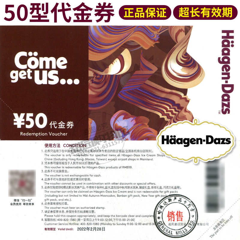Hagendas Card Vouchers RMB50 Cake Vouchers Ice Cream Hot Pot Pickup Voucher Ice Cream Cash Vouchers National