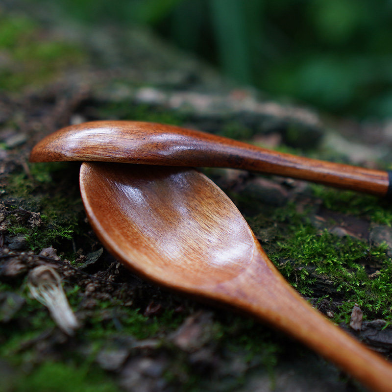 bushcraft outdoor camping black walnut soup spoon wooden spoon nanmu solid wood fork spoon rice spoon tableware