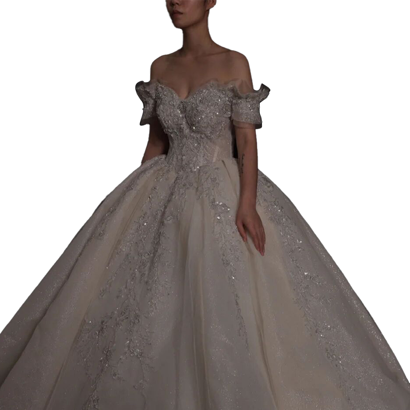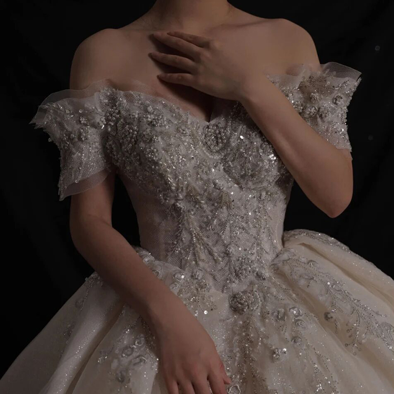 French wedding dress 2021 new bride main yarn simple shoulder luxury senior sense tailed female princess style
