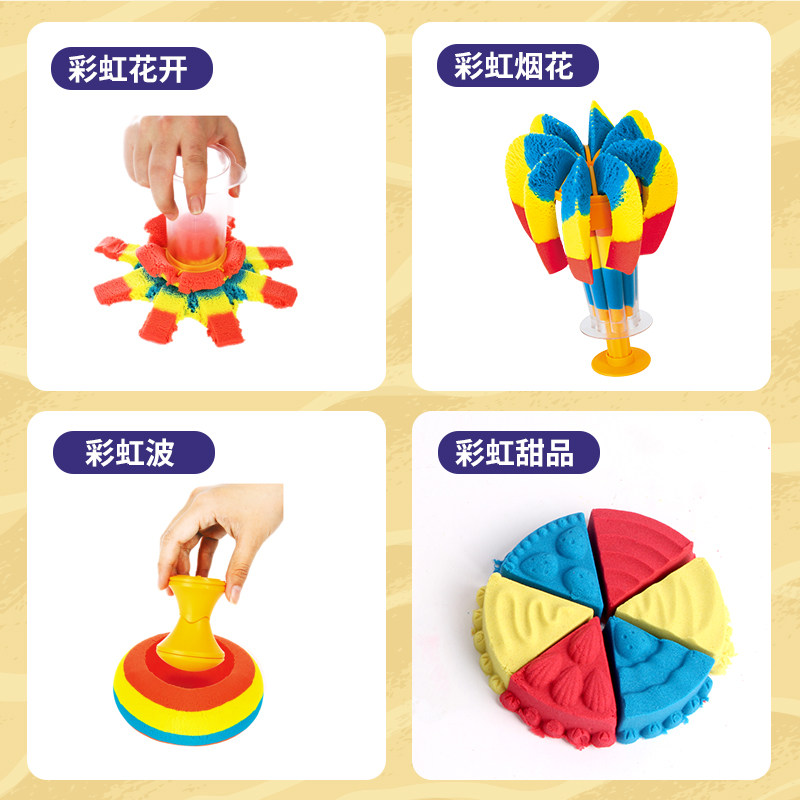 (Same as advertisement) Rainbow snack set (13 accessories, 800 grams of four-color sand) (Same as advertisement) Engineering and construction set (15 accessories, 800 grams of primary color white sand) (Same as advertisement)