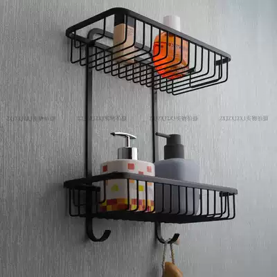 All copper bathroom rack wall mounted shower wall hanging basket black 304 shower room double shelf