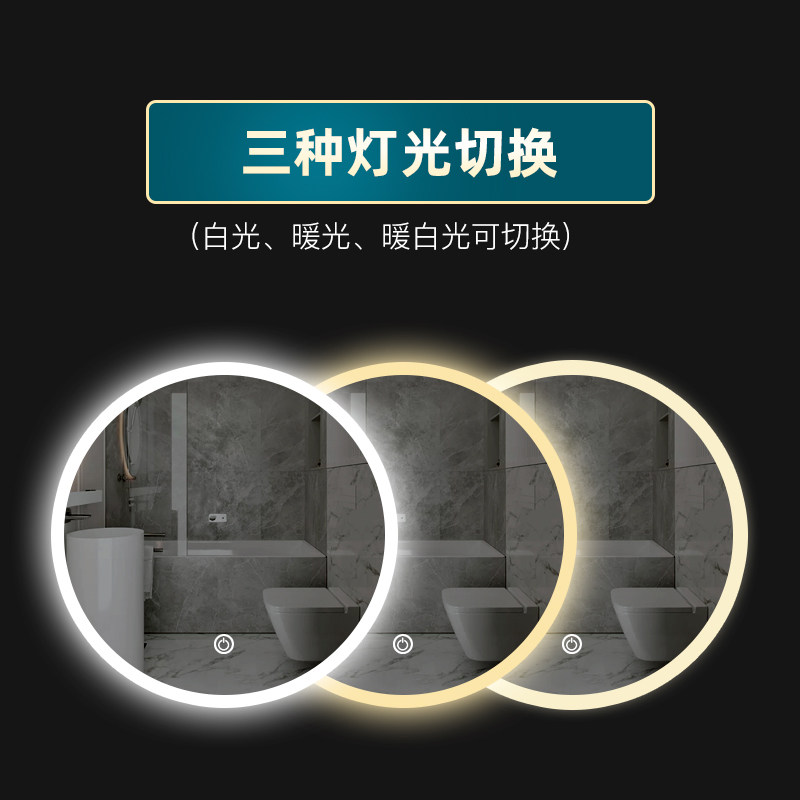 Smart round mirror bathroom led mirror dressing room makeup wall hanging with lamp bathroom mirror with lamp touch anti-fog luminous mirror
