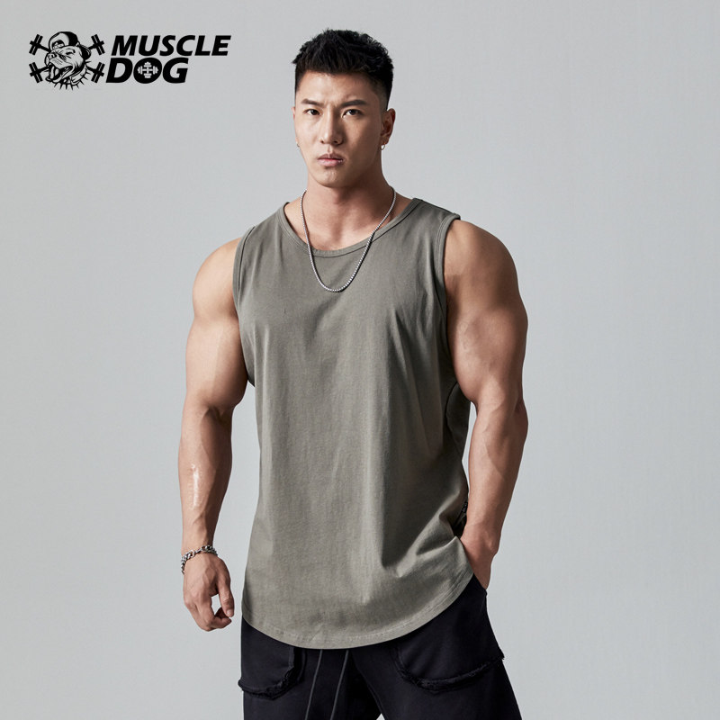 Muscle dog sports vest men's Tide brand summer solid color wild sleeveless I running training clothes fitness clothes
