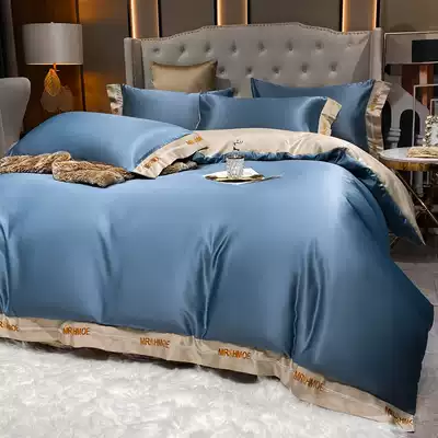 European silky naked double-sided Ice Silk denim summer simple solid color zhen si ci xiu bed linen three-piece suit