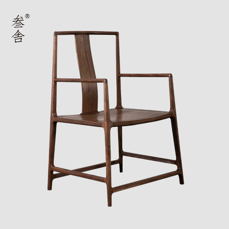 Sanshe New Chinese Chair Nanguan Hat Chair Tea Room Space Modern Simple Furniture Black Walnut Solid Wood Classic Chair