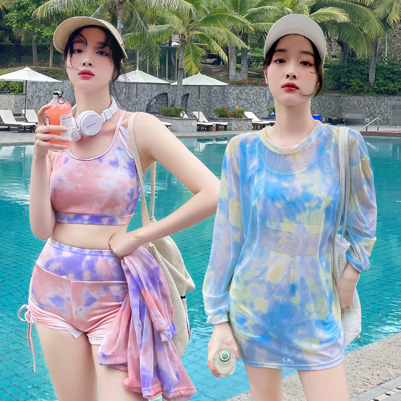 Sports wind swimsuit female students conservative beach vacation split three-piece set cover belly slimming small chest push-up swimsuit