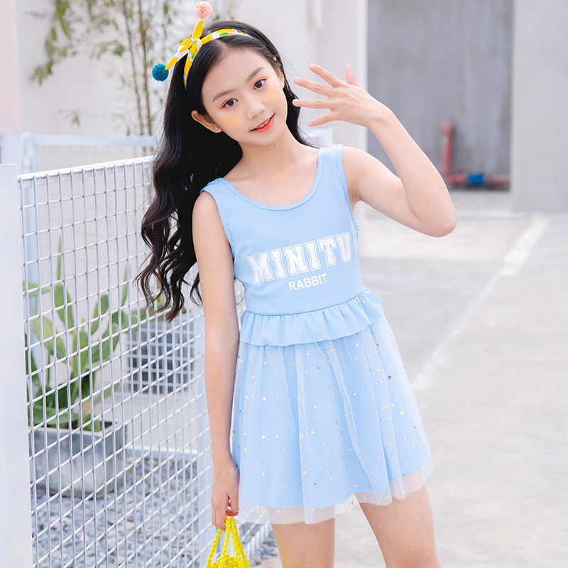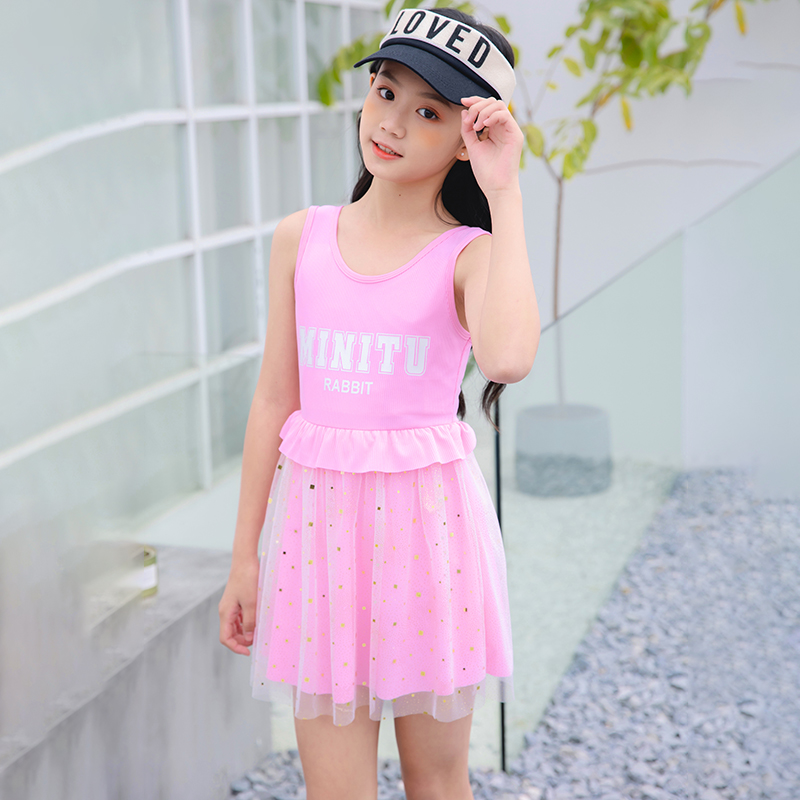 Children's swimsuit girl baby sunscreen swimsuit in big boy girl dress princess Korean student swimsuit