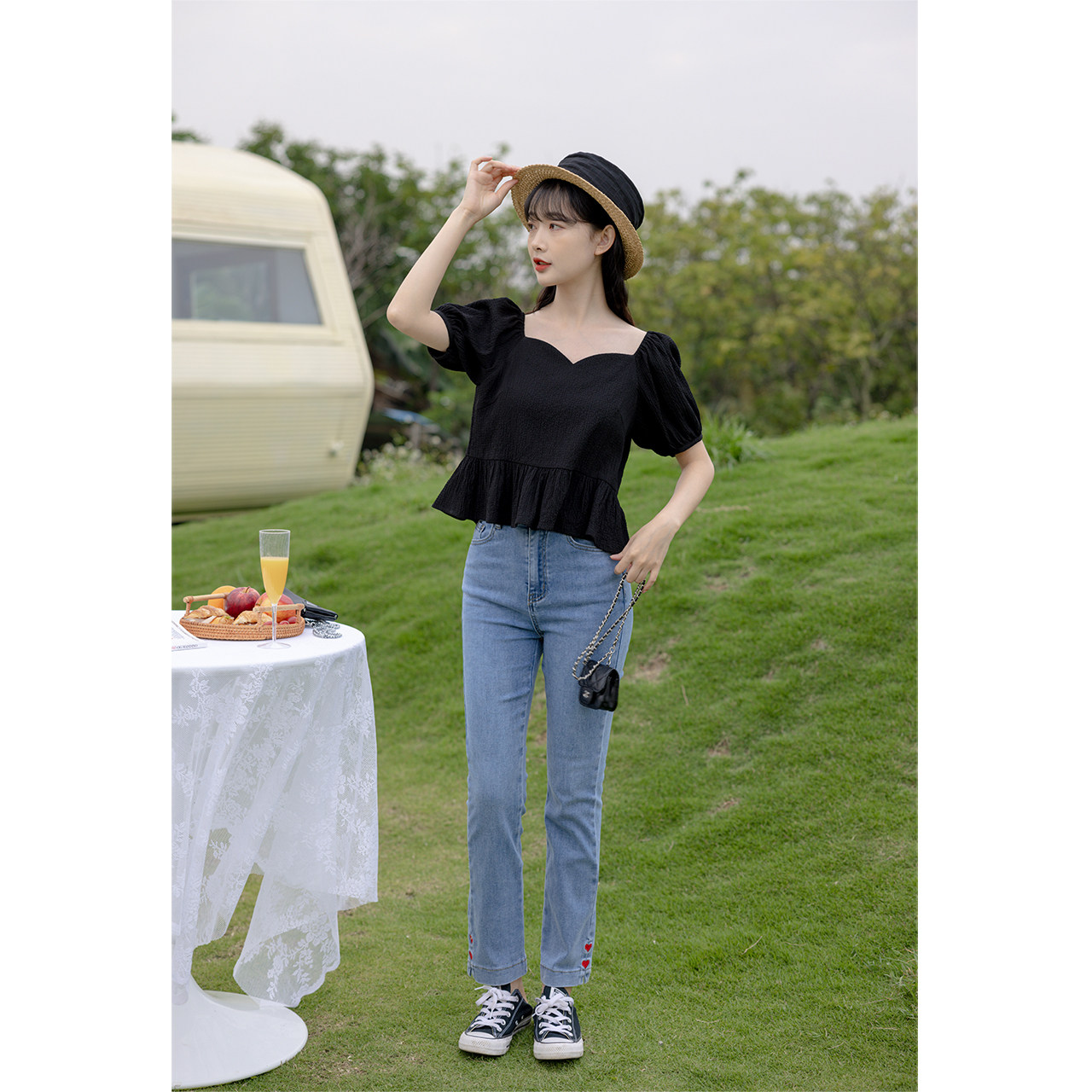 Deer Southward Short Sleeve V Collar Snow-spinning Jersey Woman 2022 New spring loose cover 100 lap design Sensation Little Crowdblouse