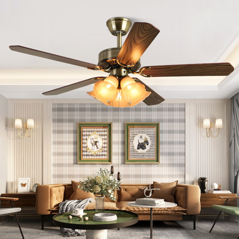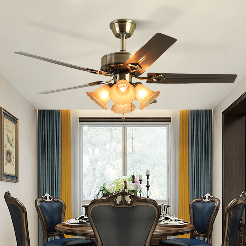Retro Ceiling Fan Light Living Room American Iron Leaf Bedroom Frequency Conversion Electric Fan Chandelier Wood Leaf Restaurant Industry Medieval Fan Light-Taobao