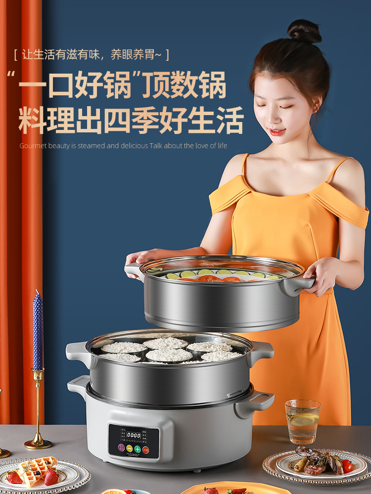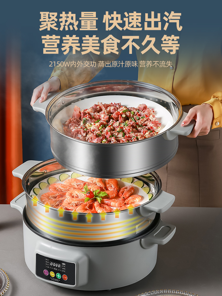 Large-capacity steamer (bottom pot with 2 layers of steamer)