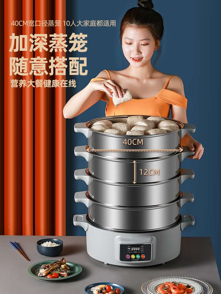 Large-capacity steamer (bottom pan with 4 layers of steamer)