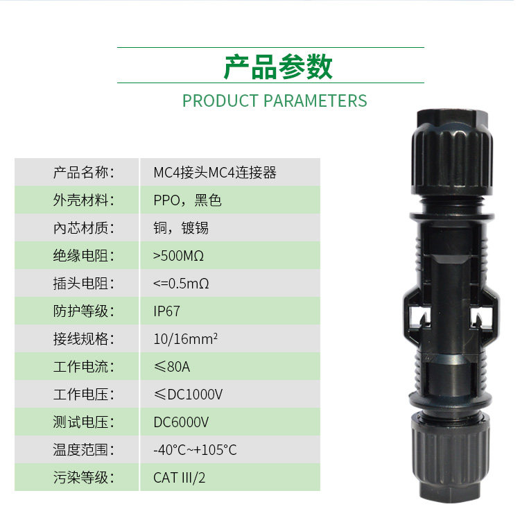80A 80A 16 square MC4 photovoltaic connector male and female plug waterproof IP67 solar photovoltaic panel connecting head