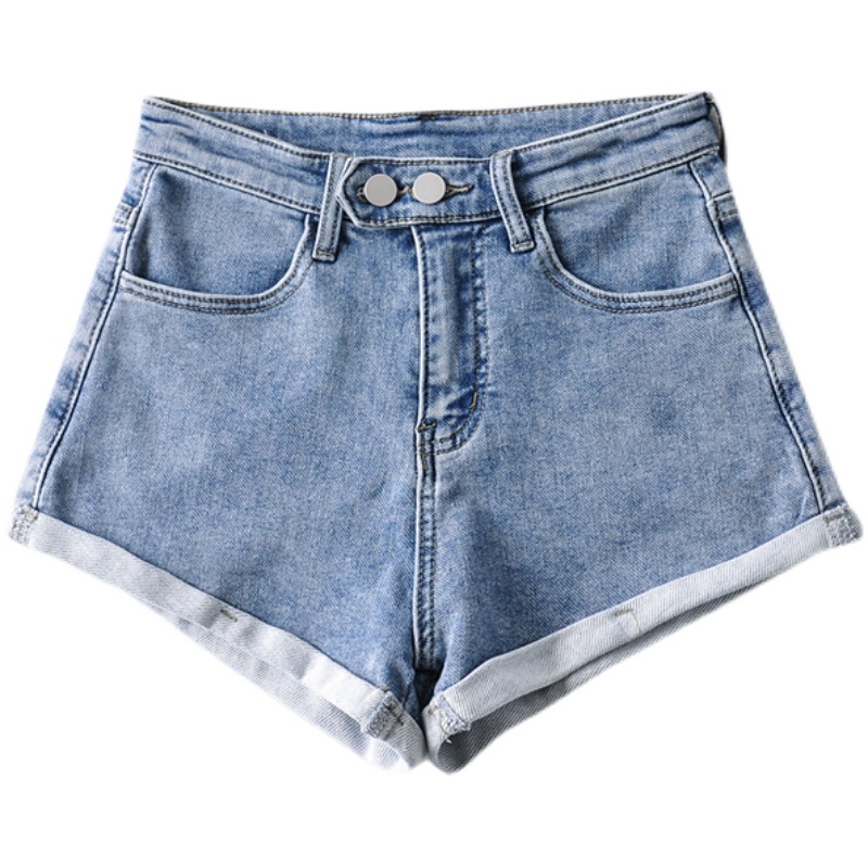 Menopausal pure desire wind curl elastic high waist washed denim shorts female hit color retro beach hot pants soft