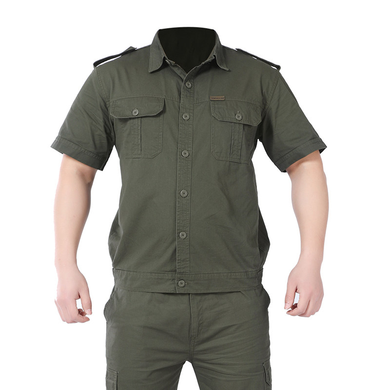 Summer work clothes suit men's thin short-sleeved cotton anti-scalding wear-resistant welder breathable labor protection clothing summer tooling